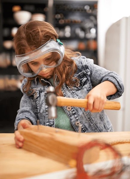 Mit natürlichen Materialien und verschiedenen Werkzeugen entdecken Kinder die Freunde am Bauen und gestalten.
